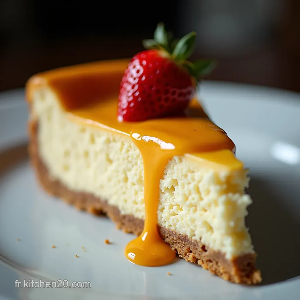 Le centre du cheesecake doit être légèrement tremblant, mais pas liquide. Si vous avez un thermomètre, la température interne idéale est d'environ 65-70°C (150-160°F).
