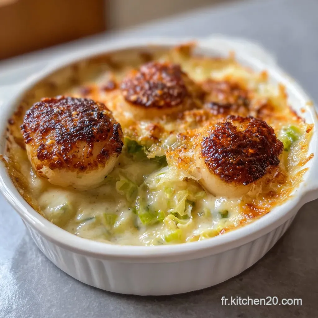 Si vous avez aimé cette approche du gratin marin, vous aimerez aussi ma recette Gratin de Pétoncles aux Poireaux Recette Crémeuse Façon Bistrot , qui est encore plus orientée vers la crème ! Ce plat de De Pétoncle Poireaux est bien plus qu'un simple repas ; c'est un moment de pur plaisir. Bon appétit !