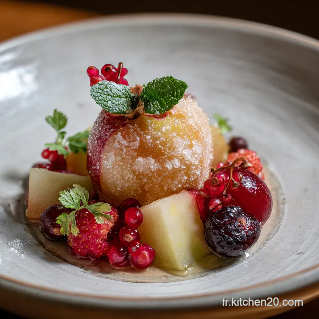 - Choc des textures : La dénaturation légère de la peau de la pomme sous l'effet de la chaleur permet au sucre de fusionner avec le fruit sans glisser.