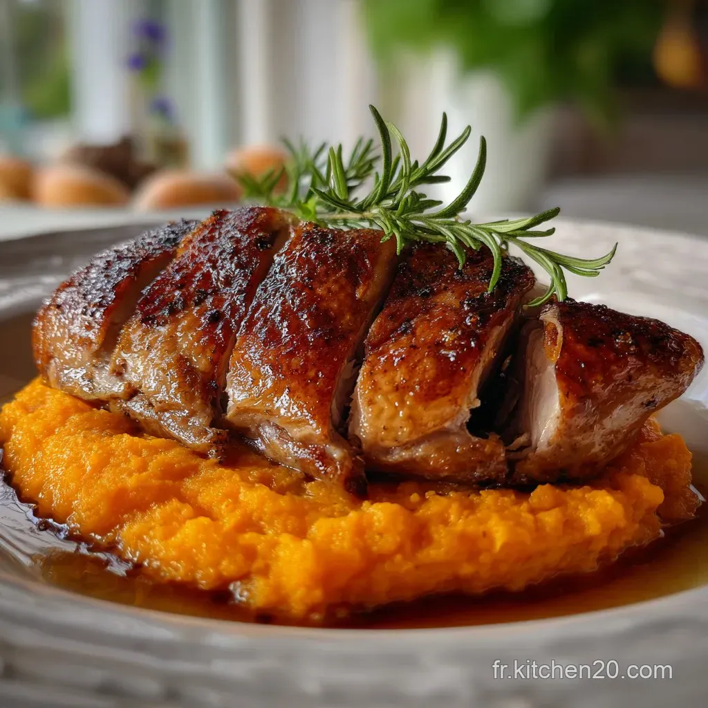 On marie la puissance du Suprême de Pintade Rôti avec la douceur réconfortante d'un écrasé patates douces/carottes. C’est chic, c’est gourmand, et ça règle tous les problèmes de cuisson de la pintade d’un coup.